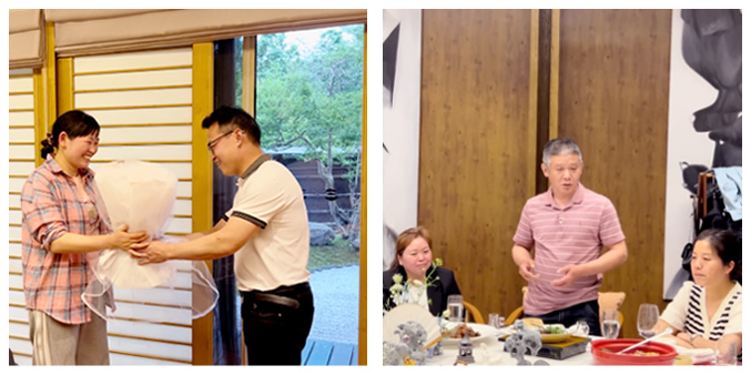 經過一天的相處,各小家庭之間都增進了了解,晚上,徐總特意準備了豐盛的晚宴,大家也早已和諧融洽,談笑風生,暢所欲言,分享感悟。席間,家屬們鼓勵并支持他們的“愛人”、“爸爸”全身心投入到未來的工作中,為前程的發展盡一份家屬的綿薄之力。
