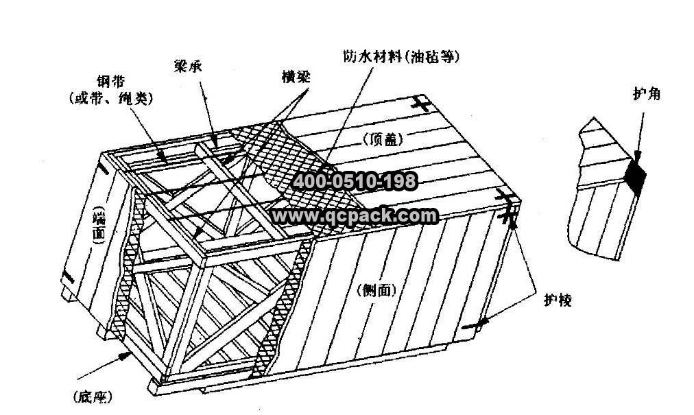 框架木箱的底座也是由滑木、輔助滑木、端木、枕木和底板組成的,其結構與滑木箱基本相同。底座在裝上內裝物而未裝側面和端面時,不能單靠底座進行起吊作業(yè),特殊情況需要起吊時,需將底座加固,參照《GB/T 10819-2005 木制底盤》進行。